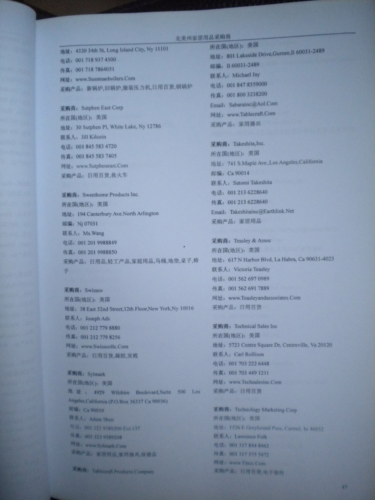 書刊簡介:《全球采商黃頁》系列叢書是由全球最活躍的專業(yè)買家及重要國際性展會的到會采購商名片信息匯編而成,包含三十多個行業(yè)分類,匯集了各類產(chǎn)品的買家信息。其中收錄的每家采購商信息均是我們通過與買家面對面的登記整理收集而成,采購意向明確,針對性強。為了確保信息的準確性和時效性,我們定期進行跟進、回訪、補充及更新工作。每家采購商信息包括國別、公司名稱、聯(lián)系人、地址、電話、傳真、電郵、網(wǎng)址、采購產(chǎn)品等詳細內(nèi)容,每冊《黃頁》約有兩千家左右的采購商信息。在當前國際出口形勢日趨嚴峻的環(huán)境下,如何降低成本開拓國際市場,是每個出口企業(yè)急需尋找的答案,我們相信通過我們10多年的外貿(mào)信息服務經(jīng)驗和最新的國際買家資源服務,將會為您拓展全球市場提供最直接有效的幫助。專業(yè)對口的買家信息一定會幫助貴公司打開更廣闊的外貿(mào)市場!