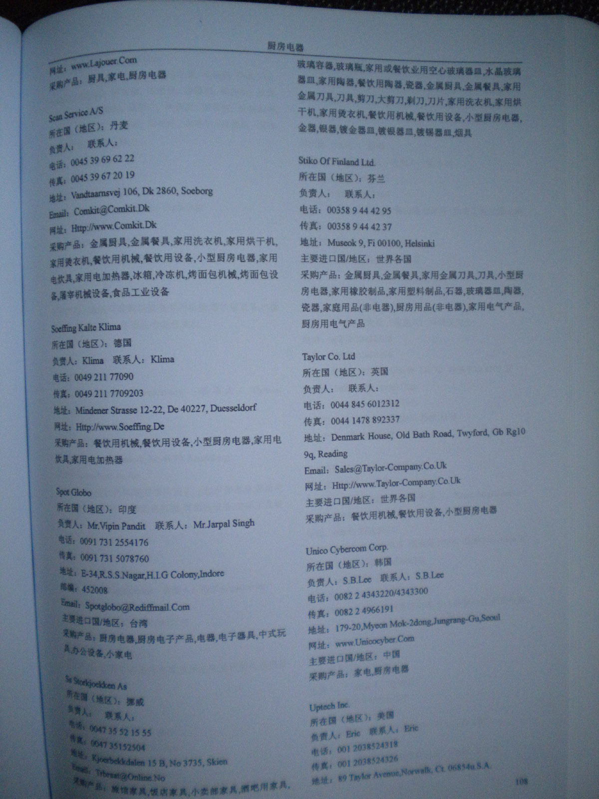 書刊簡介:《全球采商黃頁》系列叢書是由全球最活躍的專業(yè)買家及重要國際性展會的到會采購商名片信息匯編而成,包含三十多個行業(yè)分類,匯集了各類產(chǎn)品的買家信息。其中收錄的每家采購商信息均是我們通過與買家面對面的登記整理收集而成,采購意向明確,針對性強(qiáng)。為了確保信息的準(zhǔn)確性和時效性,我們定期進(jìn)行跟進(jìn)、回訪、補充及更新工作。每家采購商信息包括國別、公司名稱、聯(lián)系人、地址、電話、傳真、電郵、網(wǎng)址、采購產(chǎn)品等詳細(xì)內(nèi)容,每冊《黃頁》約有兩千家左右的采購商信息。在當(dāng)前國際出口形勢日趨嚴(yán)峻的環(huán)境下,如何降低成本開拓國際市場,是每個出口企業(yè)急需尋找的答案,我們相信通過我們10多年的外貿(mào)信息服務(wù)經(jīng)驗和最新的國際買家資源服務(wù),將會為您拓展全球市場提供最直接有效的幫助。專業(yè)對口的買家信息一定會幫助貴公司打開更廣闊的外貿(mào)市場!