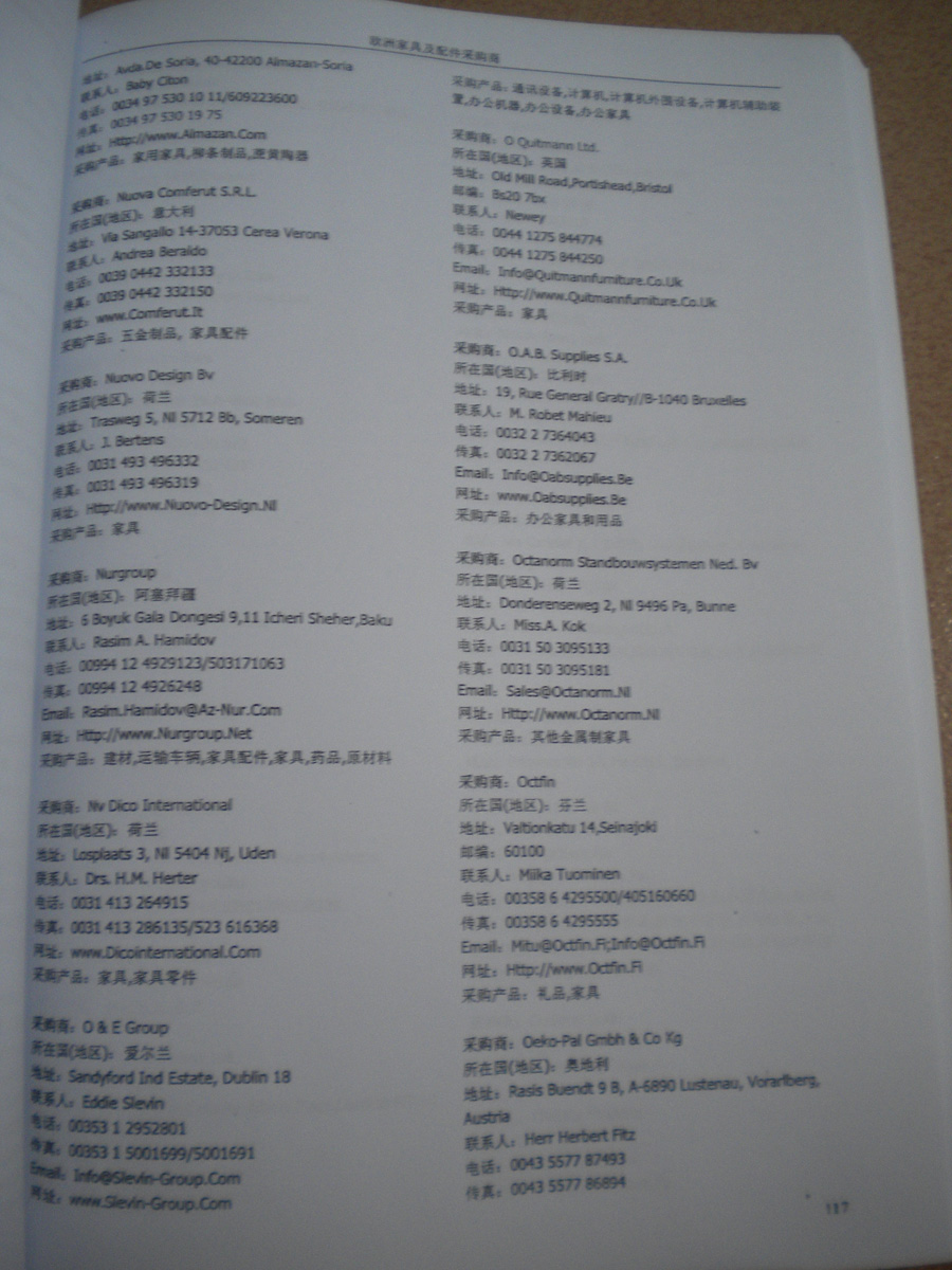 書刊簡介:《全球采商黃頁》系列叢書是由全球最活躍的專業(yè)買家及重要國際性展會的到會采購商名片信息匯編而成,包含三十多個行業(yè)分類,匯集了各類產(chǎn)品的買家信息。其中收錄的每家采購商信息均是我們通過與買家面對面的登記整理收集而成,采購意向明確,針對性強。為了確保信息的準(zhǔn)確性和時效性,我們定期進行跟進、回訪、補充及更新工作。每家采購商信息包括國別、公司名稱、聯(lián)系人、地址、電話、傳真、電郵、網(wǎng)址、采購產(chǎn)品等詳細(xì)內(nèi)容,每冊《黃頁》約有兩千家左右的采購商信息。在當(dāng)前國際出口形勢日趨嚴(yán)峻的環(huán)境下,如何降低成本開拓國際市場,是每個出口企業(yè)急需尋找的答案,我們相信通過我們10多年的外貿(mào)信息服務(wù)經(jīng)驗和最新的國際買家資源服務(wù),將會為您拓展全球市場提供最直接有效的幫助。專業(yè)對口的買家信息一定會幫助貴公司打開更廣闊的外貿(mào)市場!