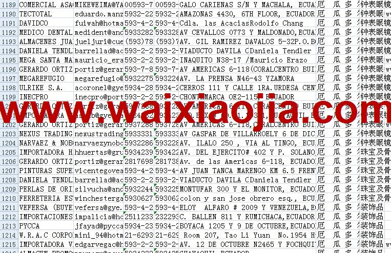厄瓜多爾采購(gòu)商名單數(shù)據(jù)為Excel格式,信息可任意修改、復(fù)制、打印、導(dǎo)出及導(dǎo)入到傳真、郵件群發(fā)等軟件中,無(wú)任何限制。