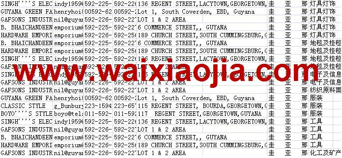 圭亞拉采購商名單數(shù)據(jù)為Excel格式,信息可任意修改、復(fù)制、打印、導(dǎo)出及導(dǎo)入到傳真、郵件群發(fā)等軟件中,無任何限制。