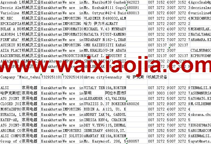 哈薩克斯坦采購商名單數(shù)據(jù)為Excel格式,信息可任意修改、復(fù)制、打印、導(dǎo)出及導(dǎo)入到傳真、郵件群發(fā)等軟件中,無任何限制。