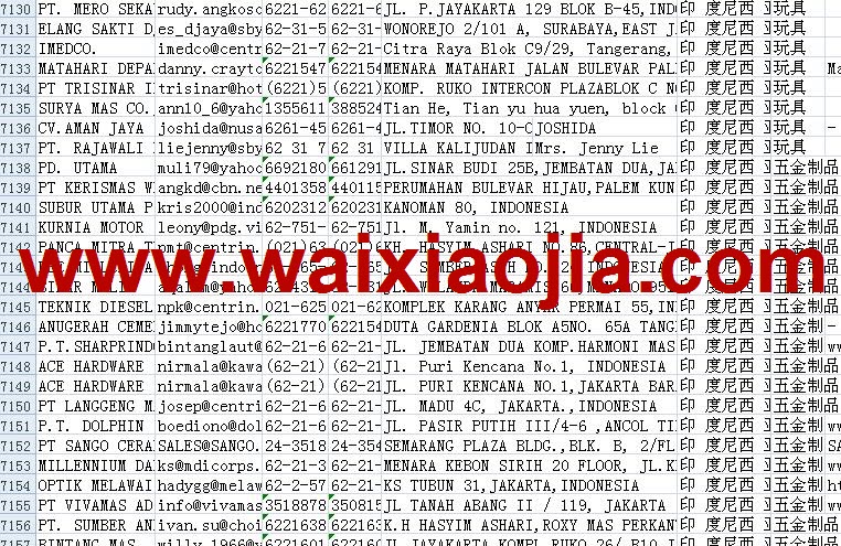 印度尼西亞采購(gòu)商名單數(shù)據(jù)為Excel格式,信息可任意修改、復(fù)制、打印、導(dǎo)出及導(dǎo)入到傳真、郵件群發(fā)等軟件中,無(wú)任何限制。