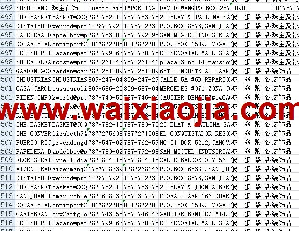 波多黎各采購(gòu)商名單數(shù)據(jù)為Excel格式,信息可任意修改、復(fù)制、打印、導(dǎo)出及導(dǎo)入到傳真、郵件群發(fā)等軟件中,無(wú)任何限制。