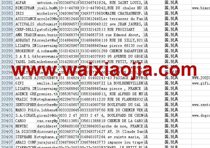 法國采購商名單數(shù)據(jù)為Excel格式,信息可任意修改、復(fù)制、打印、導出及導入到傳真、郵件群發(fā)等軟件中,無任何限制。