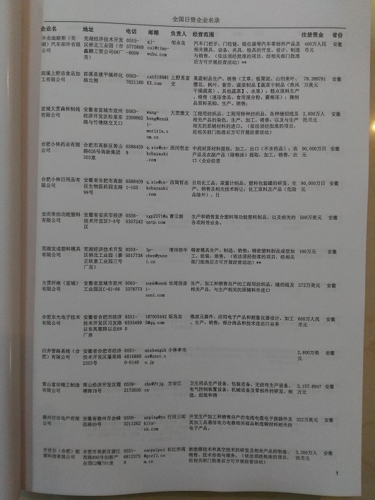 最新日本在華企業(yè)黃頁主要收錄了日本在中國(guó)境內(nèi)的獨(dú)資、合資、合作經(jīng)營(yíng)等類型的企業(yè)通信黃頁,日本外商投資企業(yè)黃頁內(nèi)容有:企業(yè)名稱、地址、電話、傳真、電子郵箱、經(jīng)營(yíng)范圍、注冊(cè)資金等;日資企業(yè)黃頁都是一些國(guó)際上的知名品牌企業(yè)在大陸地區(qū)設(shè)立的分公司及辦事機(jī)構(gòu),這類企業(yè)經(jīng)濟(jì)實(shí)力、技術(shù)實(shí)力與品牌效應(yīng)都比較強(qiáng),與這類企業(yè)開展合作業(yè)務(wù)是許多國(guó)內(nèi)企業(yè)夢(mèng)寐以求的事情,因此在華日資企業(yè)名單是各個(gè)國(guó)內(nèi)企業(yè)提高銷售業(yè)績(jī)必備的參考工具!