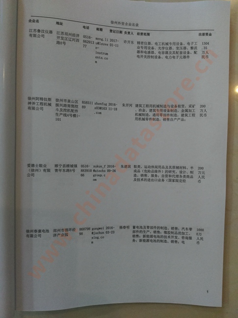 徐州外資企業(yè)黃頁經(jīng)過人工多次整理更新以及去重處理,提供開放的Excel等格式具有開放性特點,可以對徐州外資公司黃頁自由地添加、刪除、更改,導入導出到電腦中保存等操作,還可以輕松打印