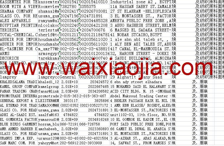埃及采購(gòu)商名單數(shù)據(jù)為Excel格式,信息可任意修改、復(fù)制、打印、導(dǎo)出及導(dǎo)入到傳真、郵件群發(fā)等軟件中,無(wú)任何限制。
