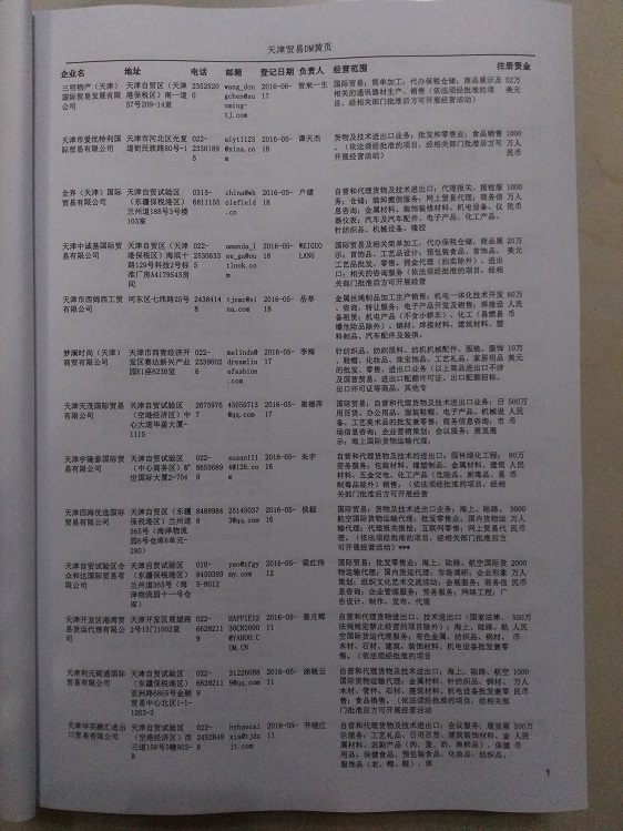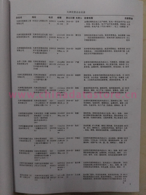 2021版最新天津企業(yè)黃頁包括《天津制造企業(yè)黃頁》、《天津貿(mào)易企業(yè)黃頁》、《天津民營(yíng)企業(yè)黃頁》、《天津外資企業(yè)黃頁》、《天津外貿(mào)企業(yè)黃頁》共五冊(cè),現(xiàn)優(yōu)惠價(jià):280元/冊(cè)。每?jī)?cè)內(nèi)容包括:?jiǎn)挝幻Q、地址、郵編、電話、傳真、郵箱、經(jīng)營(yíng)范圍等;天津企業(yè)黃頁涵蓋了近幾年來最新成立的、有一定規(guī)模的企業(yè),具有非常高的營(yíng)銷價(jià)值。有了這套黃頁開展業(yè)務(wù)也有了針對(duì)性,也省去了盲目去尋找客戶名單而浪費(fèi)的時(shí)間了,工作效率也會(huì)有很大的提高。歡迎需要天津企業(yè)黃頁的朋友及時(shí)聯(lián)系我們!