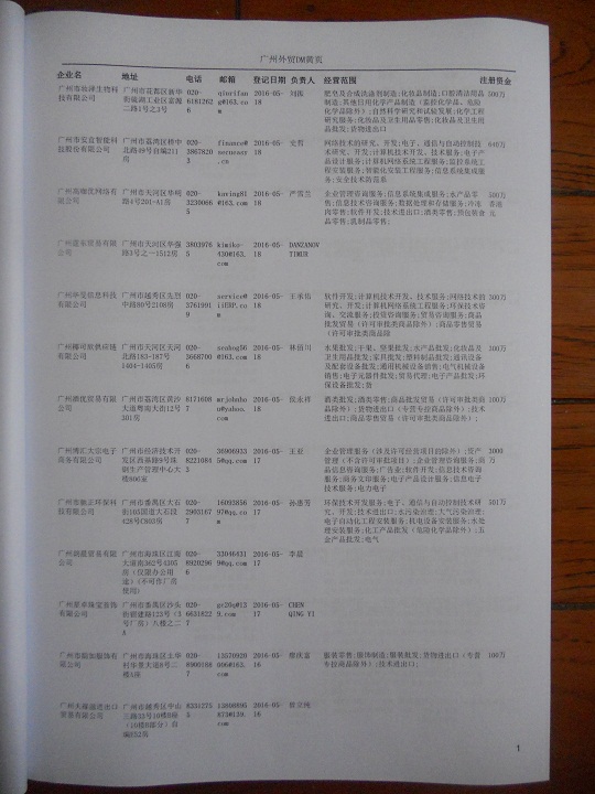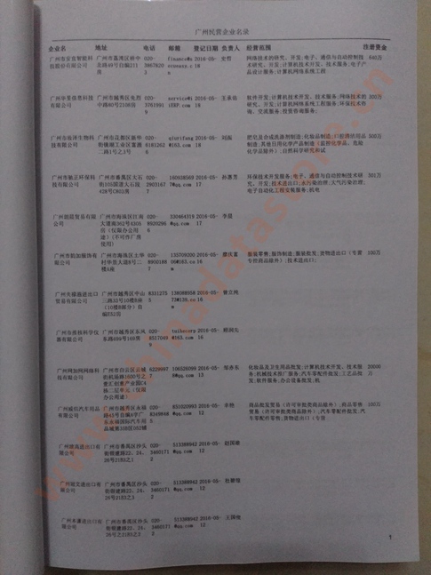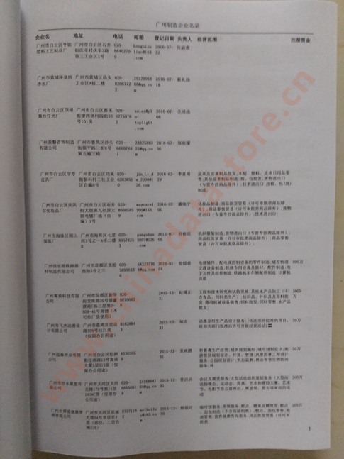 2021版最新廣州企業(yè)黃頁包括《廣州制造企業(yè)黃頁》、《廣州貿(mào)易企業(yè)黃頁》、《廣州民營企業(yè)黃頁》、《廣州外資企業(yè)黃頁》、《廣州外貿(mào)企業(yè)黃頁》共五冊,現(xiàn)優(yōu)惠價(jià):280元/冊。每冊內(nèi)容包括:單位名稱、地址、郵編、電話、傳真、郵箱、經(jīng)營范圍等;廣州企業(yè)黃頁涵蓋了近幾年來最新成立的、有一定規(guī)模的企業(yè),具有非常高的營銷價(jià)值。有了這套黃頁開展業(yè)務(wù)也有了針對性,也省去了盲目去尋找客戶名單而浪費(fèi)的時(shí)間了,工作效率也會(huì)有很大的提高。歡迎需要廣州企業(yè)黃頁的朋友及時(shí)聯(lián)系我們!