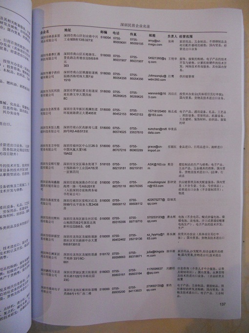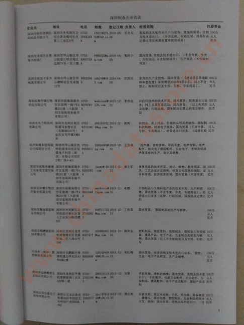2021版最新深圳企業(yè)黃頁包括《深圳制造企業(yè)黃頁》、《深圳貿(mào)易企業(yè)黃頁》、《深圳民營企業(yè)黃頁》、《深圳外資企業(yè)黃頁》、《深圳外貿(mào)企業(yè)黃頁》共五冊,現(xiàn)優(yōu)惠價(jià):280元/冊。每冊內(nèi)容包括:單位名稱、地址、郵編、電話、傳真、郵箱、經(jīng)營范圍等;深圳企業(yè)黃頁涵蓋了近幾年來最新成立的、有一定規(guī)模的企業(yè),具有非常高的營銷價(jià)值。有了這套黃頁開展業(yè)務(wù)也有了針對性,也省去了盲目去尋找客戶名單而浪費(fèi)的時(shí)間了,工作效率也會有很大的提高。歡迎需要深圳企業(yè)黃頁的朋友及時(shí)聯(lián)系我們!