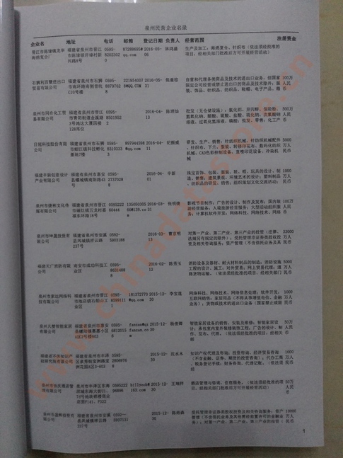 2021版最新泉州企業(yè)黃頁包括《泉州制造企業(yè)黃頁》、《泉州貿(mào)易企業(yè)黃頁》、《泉州民營企業(yè)黃頁》、《泉州外資企業(yè)黃頁》、《泉州外貿(mào)企業(yè)黃頁》共五冊,現(xiàn)優(yōu)惠價(jià):280元/冊。每冊內(nèi)容包括:單位名稱、地址、郵編、電話、傳真、郵箱、經(jīng)營范圍等;泉州企業(yè)黃頁涵蓋了近幾年來最新成立的、有一定規(guī)模的企業(yè),具有非常高的營銷價(jià)值。有了這套黃頁開展業(yè)務(wù)也有了針對性,也省去了盲目去尋找客戶名單而浪費(fèi)的時間了,工作效率也會有很大的提高。歡迎需要泉州企業(yè)黃頁的朋友及時聯(lián)系我們!