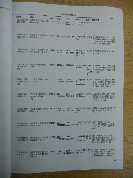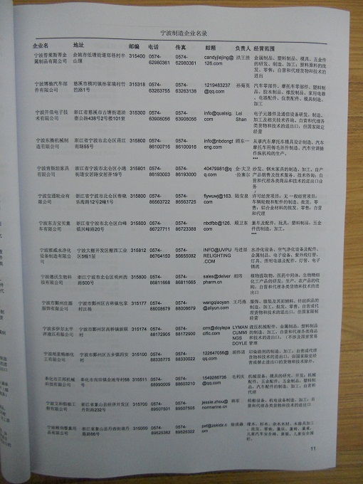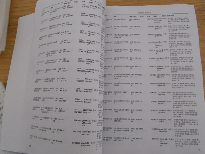 2021版最新寧波企業(yè)黃頁(yè)包括《寧波制造企業(yè)黃頁(yè)》、《寧波貿(mào)易企業(yè)黃頁(yè)》、《寧波民營(yíng)企業(yè)黃頁(yè)》、《寧波外資企業(yè)黃頁(yè)》、《寧波外貿(mào)企業(yè)黃頁(yè)》共五冊(cè),現(xiàn)優(yōu)惠價(jià):280元/冊(cè)。每?jī)?cè)內(nèi)容包括:?jiǎn)挝幻Q(chēng)、地址、郵編、電話、傳真、郵箱、經(jīng)營(yíng)范圍等;寧波企業(yè)黃頁(yè)涵蓋了近幾年來(lái)最新成立的、有一定規(guī)模的企業(yè),具有非常高的營(yíng)銷(xiāo)價(jià)值。有了這套黃頁(yè)開(kāi)展業(yè)務(wù)也有了針對(duì)性,也省去了盲目去尋找客戶(hù)名單而浪費(fèi)的時(shí)間了,工作效率也會(huì)有很大的提高。歡迎需要寧波企業(yè)黃頁(yè)的朋友及時(shí)聯(lián)系我們!