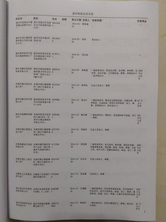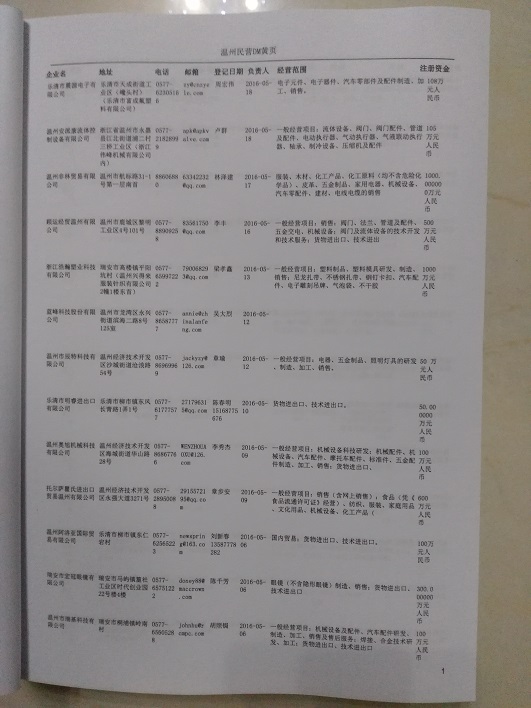 2021版最新溫州企業(yè)黃頁包括《溫州制造企業(yè)黃頁》、《溫州貿(mào)易企業(yè)黃頁》、《溫州民營企業(yè)黃頁》、《溫州外資企業(yè)黃頁》、《溫州外貿(mào)企業(yè)黃頁》共五冊,現(xiàn)優(yōu)惠價:280元/冊。每冊內(nèi)容包括:單位名稱、地址、郵編、電話、傳真、郵箱、經(jīng)營范圍等;溫州企業(yè)黃頁涵蓋了近幾年來最新成立的、有一定規(guī)模的企業(yè),具有非常高的營銷價值。有了這套黃頁開展業(yè)務(wù)也有了針對性,也省去了盲目去尋找客戶名單而浪費的時間了,工作效率也會有很大的提高。歡迎需要溫州企業(yè)黃頁的朋友及時聯(lián)系我們!