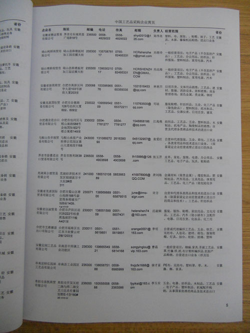 2024年新版中國(guó)工藝品采購(gòu)企業(yè)黃頁(yè),收錄了全國(guó)各地經(jīng)營(yíng)范圍涉及工藝品產(chǎn)品的貿(mào)易企業(yè),這些都是頗具實(shí)力的工藝品產(chǎn)品的中國(guó)采購(gòu)商。黃頁(yè)內(nèi)容包含:企業(yè)名稱(chēng)、地址、電話、傳真、郵箱、經(jīng)營(yíng)范圍、省份、注冊(cè)資金等信息。該套黃頁(yè)包含一個(gè)黃頁(yè)光碟加一冊(cè)紙質(zhì)書(shū)刊,全國(guó)價(jià)格:1500元,省/直轄市價(jià)格:400元,城市價(jià)格:200元,共收錄了全國(guó)各地大概7451(統(tǒng)計(jì)日期:2018.1)家工藝品產(chǎn)品采購(gòu)企業(yè)。黃頁(yè)光碟中是EXCEL格式,信息可任意修改、復(fù)制、打印、導(dǎo)出及導(dǎo)入到傳真、郵件群發(fā)等軟件中,無(wú)任何限制。