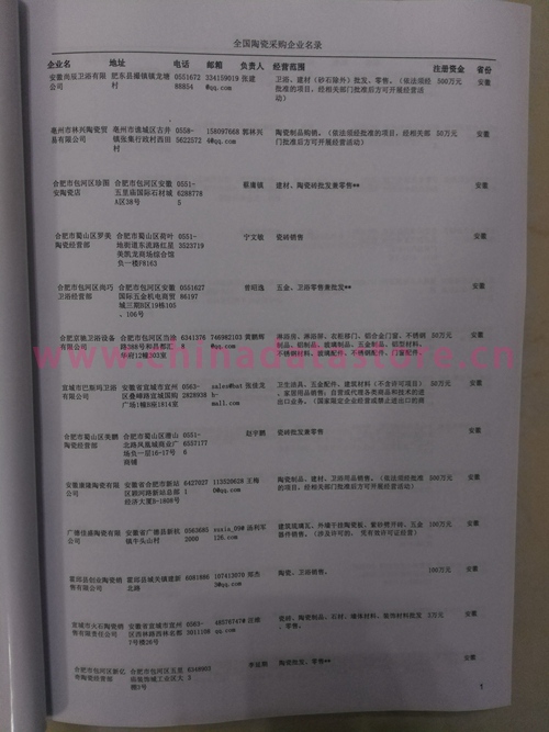 2024年新版中國(guó)陶瓷采購(gòu)企業(yè)黃頁(yè),收錄了全國(guó)各地經(jīng)營(yíng)范圍涉及陶瓷產(chǎn)品的貿(mào)易企業(yè),這些都是頗具實(shí)力的陶瓷產(chǎn)品的中國(guó)采購(gòu)商。黃頁(yè)內(nèi)容包含:企業(yè)名稱、地址、電話、傳真、郵箱、經(jīng)營(yíng)范圍、省份、注冊(cè)資金等信息。該套黃頁(yè)包含一個(gè)黃頁(yè)光碟加一冊(cè)紙質(zhì)書(shū)刊,全國(guó)價(jià)格:1500元,省/直轄市價(jià)格:400元,城市價(jià)格:200元,共收錄了全國(guó)各地大概10500(統(tǒng)計(jì)日期:2018.1)家陶瓷產(chǎn)品采購(gòu)企業(yè)。黃頁(yè)光碟中是EXCEL格式,信息可任意修改、復(fù)制、打印、導(dǎo)出及導(dǎo)入到傳真、郵件群發(fā)等軟件中,無(wú)任何限制。