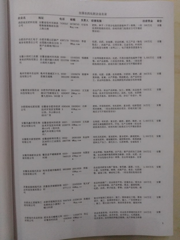 農(nóng)藥化肥生產(chǎn)貿(mào)易企業(yè)精準(zhǔn)名錄