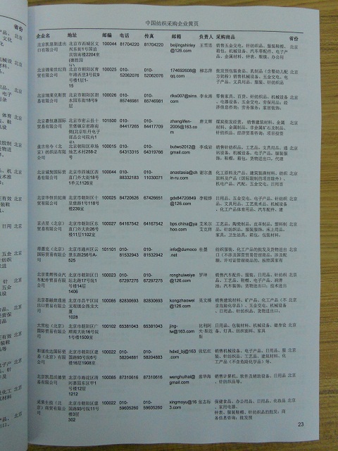 2024年新版中國紡織采購企業(yè)黃頁,收錄了全國各地經(jīng)營范圍涉及紡織產(chǎn)品的貿(mào)易企業(yè),這些都是頗具實力的紡織產(chǎn)品的中國采購商。黃頁內(nèi)容包含:企業(yè)名稱、地址、電話、傳真、郵箱、經(jīng)營范圍、省份、注冊資金等信息。該套黃頁包含一個黃頁光碟加一冊紙質書刊,全國價格:1500元,省/直轄市價格:400元,城市價格:200元,共收錄了全國各地大概34571(統(tǒng)計日期:2018.1)家紡織產(chǎn)品采購企業(yè)。黃頁光碟中是EXCEL格式,信息可任意修改、復制、打印、導出及導入到傳真、郵件群發(fā)等軟件中,無任何限制。