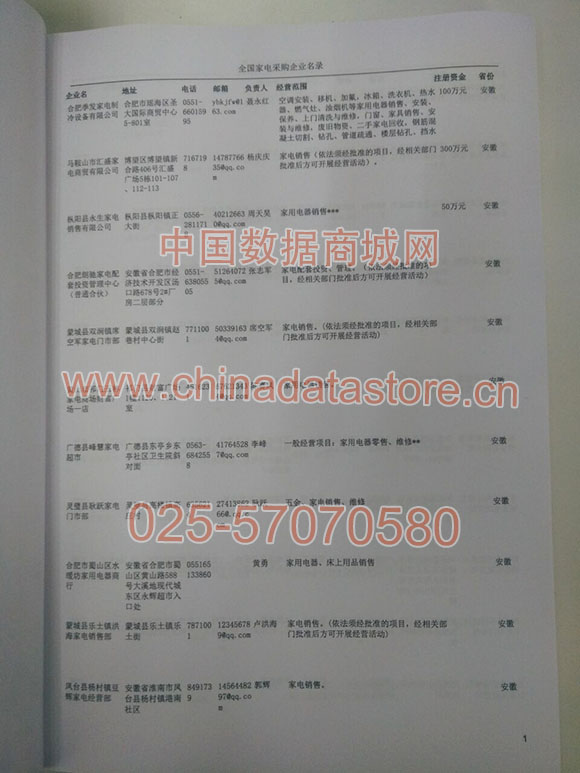 2024年新版中國家電采購企業(yè)黃頁,收錄了全國各地經營范圍涉及家電產品的貿易企業(yè),這些都是頗具實力的家電產品的中國采購商。黃頁內容包含:企業(yè)名稱、地址、電話、傳真、郵箱、經營范圍、省份、注冊資金等信息。該套黃頁包含一個黃頁光碟加一冊紙質書刊,全國價格:1500家,省/直轄市價格:400家,城市價格:200家,共收錄了全國各地大概15959(統(tǒng)計日期:2018.1)家電產品采購企業(yè)。黃頁光碟中是EXCEL格式,信息可任意修改、復制、打印、導出及導入到傳真、郵件群發(fā)等軟件中,無任何限制。