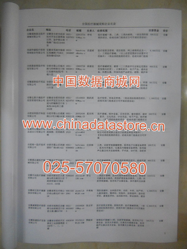 2024年新版中國醫(yī)療器械采購企業(yè)黃頁,收錄了全國各地經(jīng)營范圍涉及醫(yī)療器械產(chǎn)品的貿(mào)易企業(yè),這些都是頗具實力的醫(yī)療器械產(chǎn)品的中國采購商。黃頁內(nèi)容包含:企業(yè)名稱、地址、電話、傳真、郵箱、經(jīng)營范圍、省份、注冊資金等信息。該套黃頁包含一個黃頁光碟加一冊紙質(zhì)書刊,全國價格:1200元,省/直轄市價格是:400元,城市價格是:200元,共收錄了全國各地大概36680家(更新日期:2017.1)醫(yī)療器械產(chǎn)品采購企業(yè)。黃頁光碟中是EXCEL格式,信息可任意修改、復制、打印、導出及導入到傳真、郵件群發(fā)等軟件中,無任何限制。