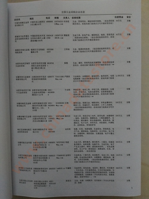 2024年新版中國五金采購企業(yè)黃頁,收錄了全國各地經(jīng)營范圍涉及五金產(chǎn)品的貿(mào)易企業(yè),這些都是頗具實(shí)力的五金產(chǎn)品的中國采購商。黃頁內(nèi)容包含:企業(yè)名稱、地址、電話、傳真、郵箱、經(jīng)營范圍、省份、注冊資金等信息。該套黃頁包含一個黃頁光碟加一冊紙質(zhì)書刊,全國價格:1500元,省/直轄市價格:400元,城市價格:200元,共收錄了全國各地大概29596(統(tǒng)計(jì)日期:2018.1)家五金產(chǎn)品采購企業(yè)。黃頁光碟中是EXCEL格式,信息可任意修改、復(fù)制、打印、導(dǎo)出及導(dǎo)入到傳真、郵件群發(fā)等軟件中,無任何限制。