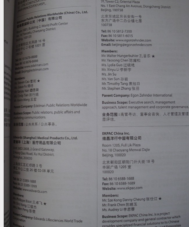 《2016年中國美國商會會員黃頁》為中英文對照形式,收錄了中國美國商會企業(yè)及個人會員黃頁內(nèi)容包括名稱、地址、郵編、電話、傳真、網(wǎng)址、中國聯(lián)系人、負責人、業(yè)務(wù)范圍等詳細內(nèi)容
