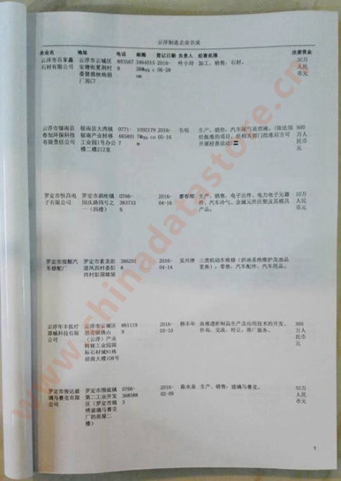 2021版最新云浮企業(yè)黃頁包括《云浮制造企業(yè)黃頁》、《云浮民營企業(yè)黃頁》,現(xiàn)優(yōu)惠價:280元/冊。每冊內(nèi)容包括:單位名稱、地址、郵編、電話、傳真、郵箱、經(jīng)營范圍等;云浮企業(yè)黃頁涵蓋了近幾年來最新成立的、有一定規(guī)模的企業(yè),具有非常高的營銷價值。有了這套黃頁開展業(yè)務(wù)也有了針對性,也省去了盲目去尋找客戶名單而浪費(fèi)的時間了,工作效率也會有很大的提高。歡迎需要云浮企業(yè)黃頁的朋友及時聯(lián)系我們!