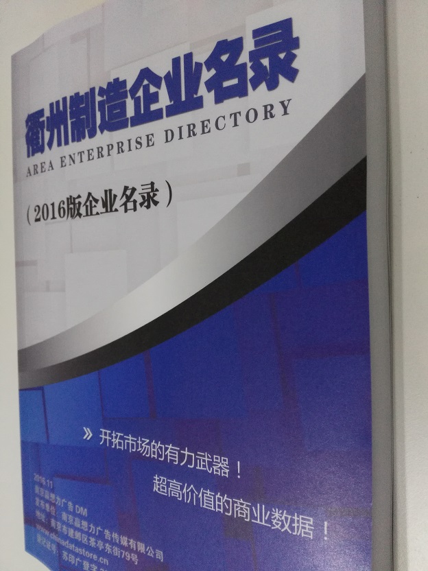 2021版最新衢州企業(yè)黃頁包括《衢州制造企業(yè)黃頁》、《衢州民營企業(yè)黃頁》,現(xiàn)優(yōu)惠價(jià):280元/冊。每冊內(nèi)容包括:單位名稱、地址、郵編、電話、傳真、郵箱、經(jīng)營范圍等;衢州企業(yè)黃頁涵蓋了近幾年來最新成立的、有一定規(guī)模的企業(yè),具有非常高的營銷價(jià)值。有了這套黃頁開展業(yè)務(wù)也有了針對性,也省去了盲目去尋找客戶名單而浪費(fèi)的時(shí)間了,工作效率也會(huì)有很大的提高。歡迎需要衢州企業(yè)黃頁的朋友及時(shí)聯(lián)系我們!