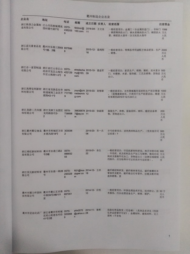 2021版衢州企業(yè)名錄