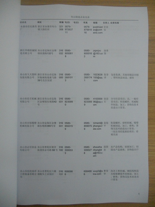2021版最新舟山企業(yè)黃頁(yè)包括《舟山制造企業(yè)黃頁(yè)》、《舟山民營(yíng)企業(yè)黃頁(yè)》,現(xiàn)優(yōu)惠價(jià):280元/冊(cè)。每?jī)?cè)內(nèi)容包括:?jiǎn)挝幻Q、地址、郵編、電話、傳真、郵箱、經(jīng)營(yíng)范圍等;舟山企業(yè)黃頁(yè)涵蓋了近幾年來(lái)最新成立的、有一定規(guī)模的企業(yè),具有非常高的營(yíng)銷價(jià)值。有了這套黃頁(yè)開(kāi)展業(yè)務(wù)也有了針對(duì)性,也省去了盲目去尋找客戶名單而浪費(fèi)的時(shí)間了,工作效率也會(huì)有很大的提高。歡迎需要舟山企業(yè)黃頁(yè)的朋友及時(shí)聯(lián)系我們!