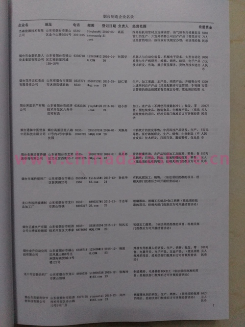 2021版最新煙臺(tái)企業(yè)黃頁包括《煙臺(tái)制造企業(yè)黃頁》、《煙臺(tái)民營企業(yè)黃頁》,現(xiàn)優(yōu)惠價(jià):280元/冊。每冊內(nèi)容包括:單位名稱、地址、郵編、電話、傳真、郵箱、經(jīng)營范圍等;煙臺(tái)企業(yè)黃頁涵蓋了近幾年來最新成立的、有一定規(guī)模的企業(yè),具有非常高的營銷價(jià)值。有了這套黃頁開展業(yè)務(wù)也有了針對(duì)性,也省去了盲目去尋找客戶名單而浪費(fèi)的時(shí)間了,工作效率也會(huì)有很大的提高。歡迎需要煙臺(tái)企業(yè)黃頁的朋友及時(shí)聯(lián)系我們!