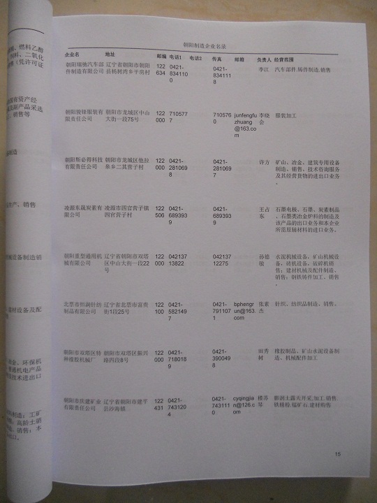 2021版最新朝陽企業(yè)黃頁包括《朝陽制造企業(yè)黃頁》、《朝陽民營企業(yè)黃頁》,現(xiàn)優(yōu)惠價(jià):280元/冊。每冊內(nèi)容包括:單位名稱、地址、郵編、電話、傳真、郵箱、經(jīng)營范圍等;朝陽企業(yè)黃頁涵蓋了近幾年來最新成立的、有一定規(guī)模的企業(yè),具有非常高的營銷價(jià)值。有了這套黃頁開展業(yè)務(wù)也有了針對性,也省去了盲目去尋找客戶名單而浪費(fèi)的時(shí)間了,工作效率也會(huì)有很大的提高。歡迎需要朝陽企業(yè)黃頁的朋友及時(shí)聯(lián)系我們!