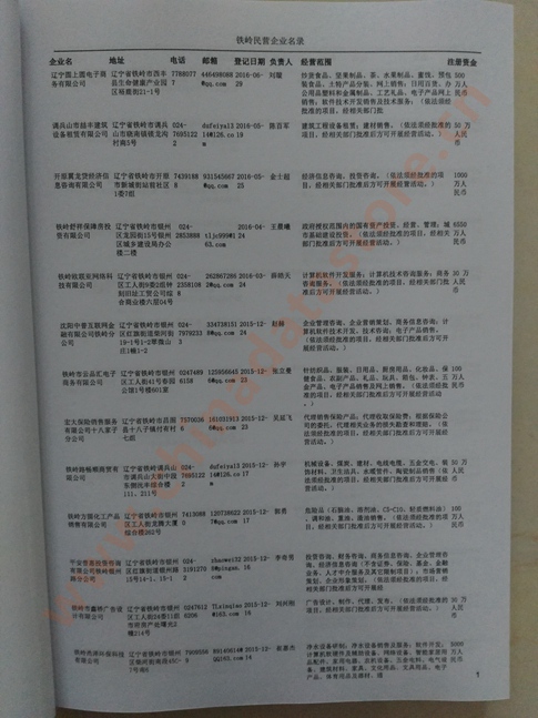 2021版最新鐵嶺企業(yè)黃頁包括《鐵嶺制造企業(yè)黃頁》、《鐵嶺民營企業(yè)黃頁》,現(xiàn)優(yōu)惠價:280元/冊。每冊內(nèi)容包括:單位名稱、地址、郵編、電話、傳真、郵箱、經(jīng)營范圍等;鐵嶺企業(yè)黃頁涵蓋了近幾年來最新成立的、有一定規(guī)模的企業(yè),具有非常高的營銷價值。有了這套黃頁開展業(yè)務(wù)也有了針對性,也省去了盲目去尋找客戶名單而浪費的時間了,工作效率也會有很大的提高。歡迎需要鐵嶺企業(yè)黃頁的朋友及時聯(lián)系我們!