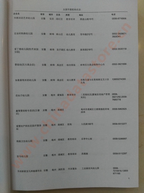 某省或直轄市 如上海、浙江早教機(jī)構(gòu)名單  80% - 90% 600元 附贈(zèng)一冊(cè)早教機(jī)構(gòu)紙質(zhì)印刷品