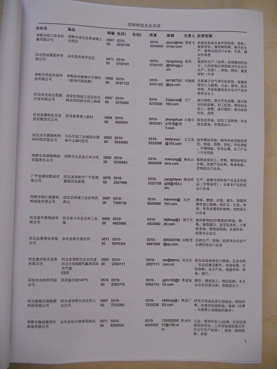 2021版最新邯鄲企業(yè)黃頁包括《邯鄲制造企業(yè)黃頁》、《邯鄲民營企業(yè)黃頁》,現(xiàn)優(yōu)惠價(jià):280元/冊。每冊內(nèi)容包括:單位名稱、地址、郵編、電話、傳真、郵箱、經(jīng)營范圍等;邯鄲企業(yè)黃頁涵蓋了近幾年來最新成立的、有一定規(guī)模的企業(yè),具有非常高的營銷價(jià)值。有了這套黃頁開展業(yè)務(wù)也有了針對性,也省去了盲目去尋找客戶名單而浪費(fèi)的時(shí)間了,工作效率也會(huì)有很大的提高。歡迎需要邯鄲企業(yè)黃頁的朋友及時(shí)聯(lián)系我們!