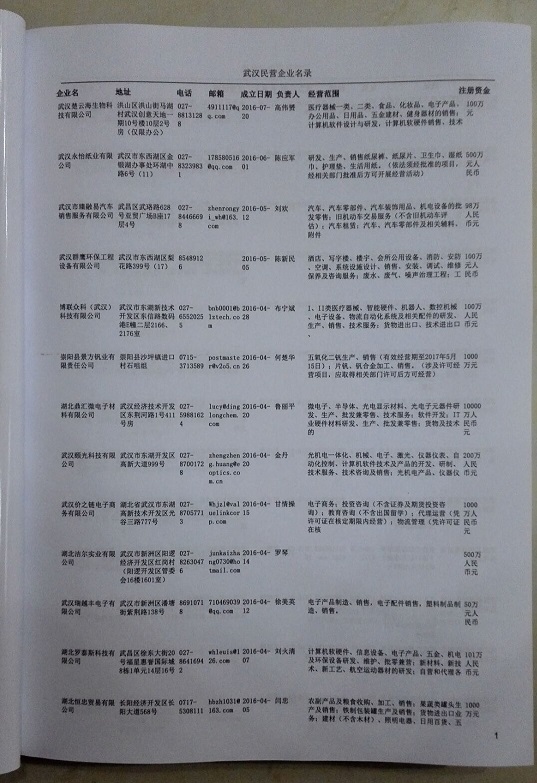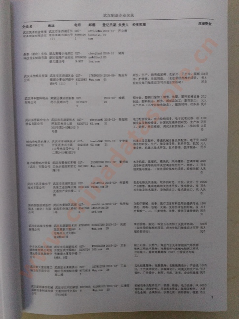 2021版最新武漢企業(yè)黃頁包括《武漢制造企業(yè)黃頁》、《武漢民營企業(yè)黃頁》,現(xiàn)優(yōu)惠價(jià):280元/冊(cè)。每?jī)?cè)內(nèi)容包括:?jiǎn)挝幻Q、地址、郵編、電話、傳真、郵箱、經(jīng)營范圍等;武漢企業(yè)黃頁涵蓋了近幾年來最新成立的、有一定規(guī)模的企業(yè),具有非常高的營銷價(jià)值。有了這套黃頁開展業(yè)務(wù)也有了針對(duì)性,也省去了盲目去尋找客戶名單而浪費(fèi)的時(shí)間了,工作效率也會(huì)有很大的提高。歡迎需要武漢企業(yè)黃頁的朋友及時(shí)聯(lián)系我們!