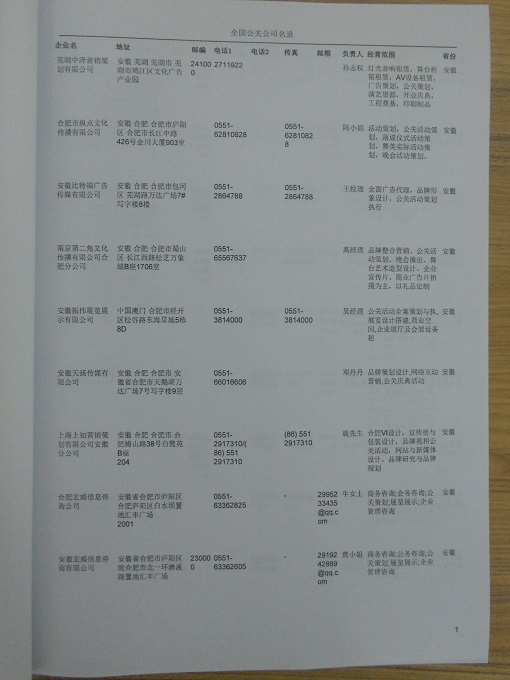公關企業(yè)黃頁收錄了最新的公關企業(yè)名單,具有極高的營銷價值,實實在在提高銷售業(yè)績