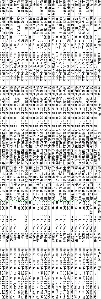 120屆廣交會參展商黃頁數(shù)據(jù)為Excel格式,信息可任意修改、復制、打印、導出及導入到傳真、郵件群發(fā)等軟件中,無任何限制。