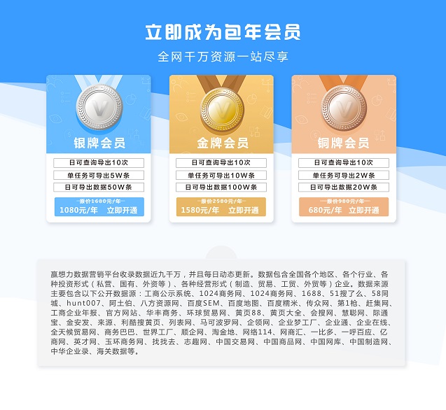 | 某省或直轄市 | 如上海、浙江超市企業(yè)名單 | 80% - 90% | 600元 | 附贈一冊超市紙質(zhì)印刷品 |