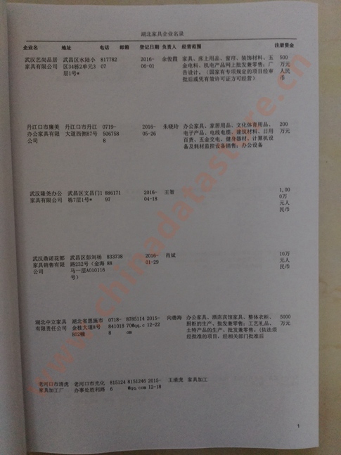 湖北家具企業(yè)名單助您立刻獲得大量潛在客戶(hù)信息,大大減少銷(xiāo)售成本,是您的事業(yè)事半功倍