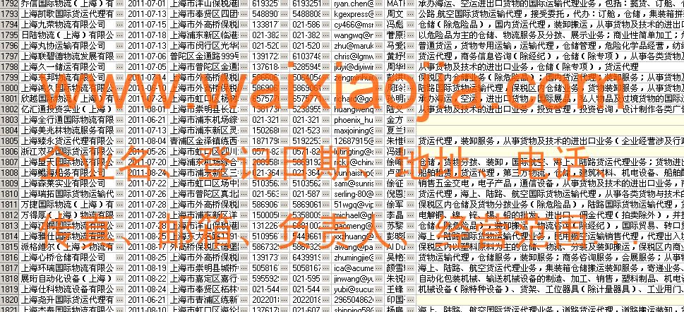 河北貨運(yùn)代理公司名單數(shù)據(jù)為Excel格式,信息可任意修改、復(fù)制、打印、導(dǎo)出及導(dǎo)入到傳真、郵件群發(fā)等軟件中,無(wú)任何限制。