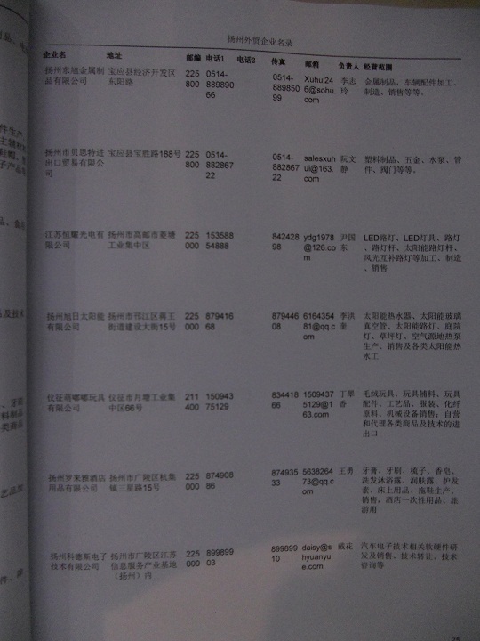 揚(yáng)州外貿(mào)企業(yè)名錄揚(yáng)州進(jìn)出口企業(yè)名錄,揚(yáng)州進(jìn)口企業(yè)名錄,揚(yáng)州出口企業(yè)名錄