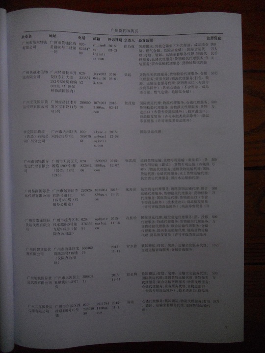 廣州貨運公司黃頁包括:企業(yè)名稱、負責人聯(lián)系方式、企業(yè)電話、傳真、Email、經(jīng)營范圍、地址、郵編等信息。