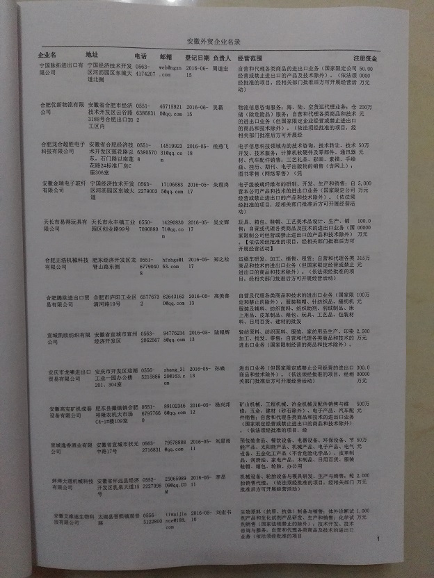 最全安徽外貿(mào)公司黃頁 包括2000年-2024年間所有企業(yè)。
