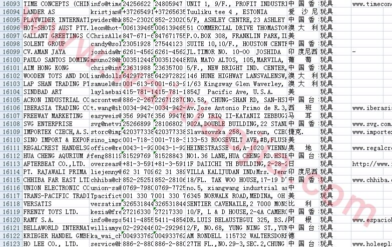 玩具采購商名單數據為Excel格式,信息可任意修改、復制、打印、導出及導入到傳真、郵件群發(fā)等軟件中,無任何限制。