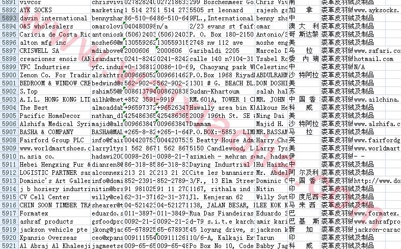 裘皮革羽絨及制品采購商名單數(shù)據(jù)為Excel格式,信息可任意修改、復(fù)制、打印、導(dǎo)出及導(dǎo)入到傳真、郵件群發(fā)等軟件中,無任何限制。