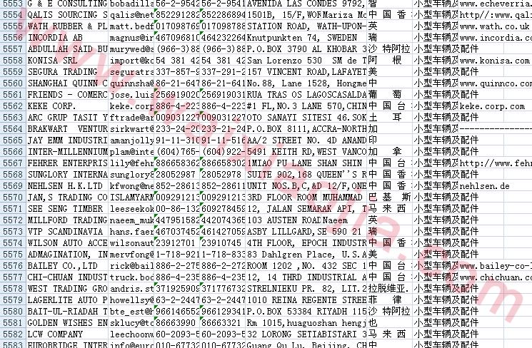 小型車輛及配件采購商名單數(shù)據(jù)為Excel格式,信息可任意修改、復(fù)制、打印、導(dǎo)出及導(dǎo)入到傳真、郵件群發(fā)等軟件中,無任何限制。