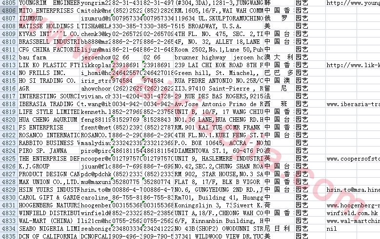 園藝采購(gòu)商名單數(shù)據(jù)為Excel格式,信息可任意修改、復(fù)制、打印、導(dǎo)出及導(dǎo)入到傳真、郵件群發(fā)等軟件中,無任何限制。