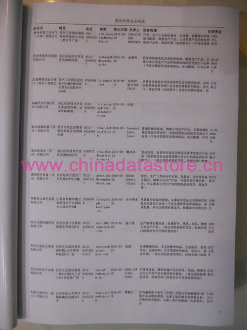 最新蘇州外資企業(yè)黃頁涵蓋了蘇州外商獨(dú)資企業(yè)、中外合資經(jīng)營企業(yè)以及港、澳、臺(tái)資企業(yè),包括蘇州臺(tái)資日資企業(yè)黃頁,蘇州外企黃頁黃頁具體內(nèi)容包括:企業(yè)名稱、地址、電話、傳真、郵箱、經(jīng)營范圍、注冊資金等信息;蘇州臺(tái)企日企名單里面的企業(yè)都一些中外合資的大企業(yè),這些公司經(jīng)濟(jì)實(shí)力都比較雄厚,出口產(chǎn)品也比較多,業(yè)務(wù)范圍都比較廣,跟他們開展業(yè)務(wù)往來都比較容易;有了蘇州外企黃頁開展業(yè)務(wù)也有了針對性,也省去了盲目去尋找客戶名單而浪費(fèi)的時(shí)間了,工作效率也會(huì)有很大的提高.歡迎需要的客戶及時(shí)聯(lián)系我們!