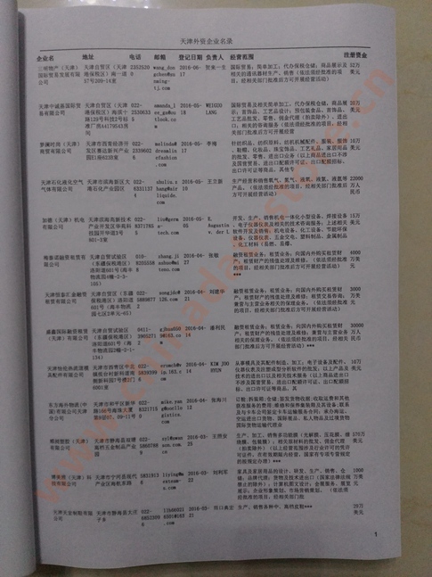 | 某個(gè)國別或地區(qū)投資企業(yè)黃頁 | 如天津日企黃頁、天津臺企黃頁 | 80% | RMB:300元 |